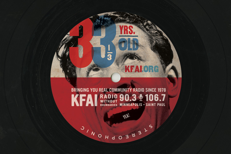 Detail of promotional material for KFAI's 331⁄3 birthday.