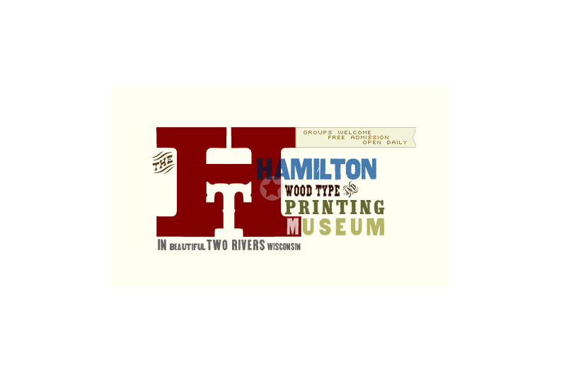 Hamilton Wood Type Museum logotype, or in layman's terms, I combined the logo (the "H" and "T") with a type treatment, the little flag, etc.