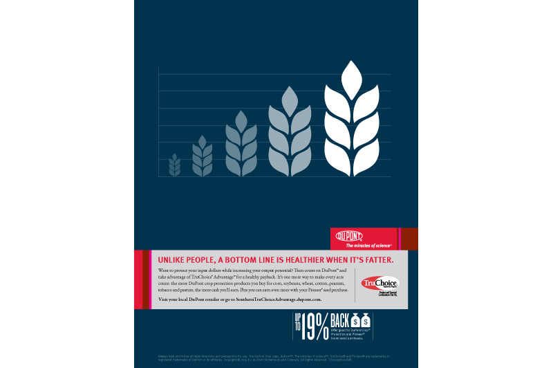 DuPont Pioneer magazine ad, different variation. I drew the cotton plant as well.